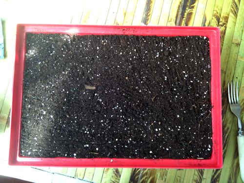 Έβαλα το χώμα στον δίσκο από το κλουβί του χάμστερ - με έχει σώσει πολλές φορές. Μέχρι την μεταφύτευση, το ύψος του δίσκου είναι τέλειο για αναπαραγωγή κάκτων.