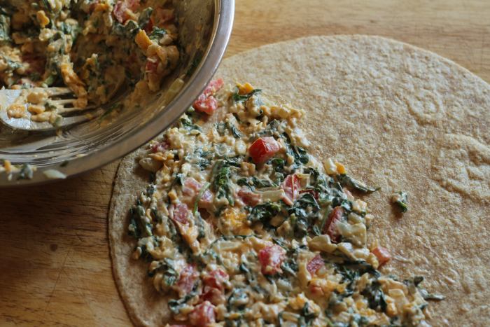מפזרים את התערובת על טורטיה, מגלגלים כרצונכם ומטגנים בחמאה. כיף במיוחד לטגן את הקסדייה במחבת גריל.