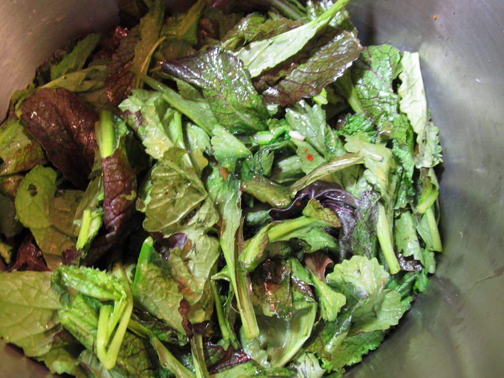 מחממים שמן בסיר קטן, מוסיפים שום קצוץ, פלפל ומעט מלח. מיד לאחר מכן מוסיפים ירוקים ומאדים על להבה נמוכה כדקה. מוסיפים מרק ומבשלים כ-5 דקות עם מכסה. פותחים את המכסה ומבשלים עוד 2-3 דקות. אני אוהב להוסיף בזיליקום ורוקט למנה הזו ולהגיש אותה לצד בשר או פסטה עם גבינה.