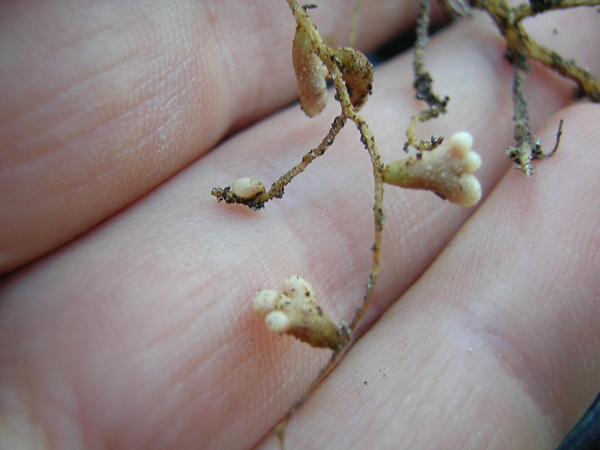 गांठनुमा नाइट्रोजन स्थिरीकरण बैक्टीरिया राइजोबियम, जो फलियों की जड़ों पर गांठ बनाते हैं।