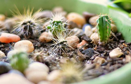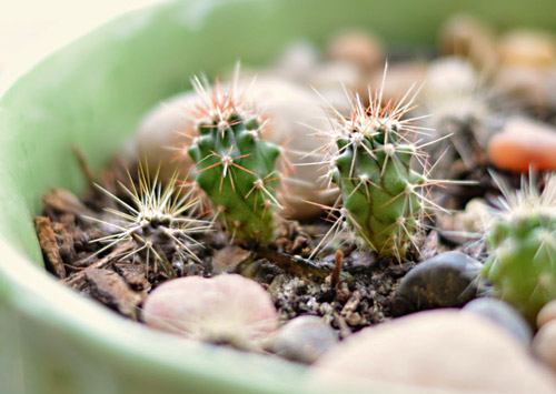 बीजों से उगाए गए कैक्टस, 9 महीने बाद। इन्हें एक महीने पहले कैक्टस की थाली में स्थानांतरित किया गया था। वसंत ऋतु में अंकुरित हुए पौधों में से लगभग 70% का नुकसान हुआ, जिनमें से अधिकांश कैक्टस सिकुड़ गए और किसी अज्ञात कारण से मर गए।