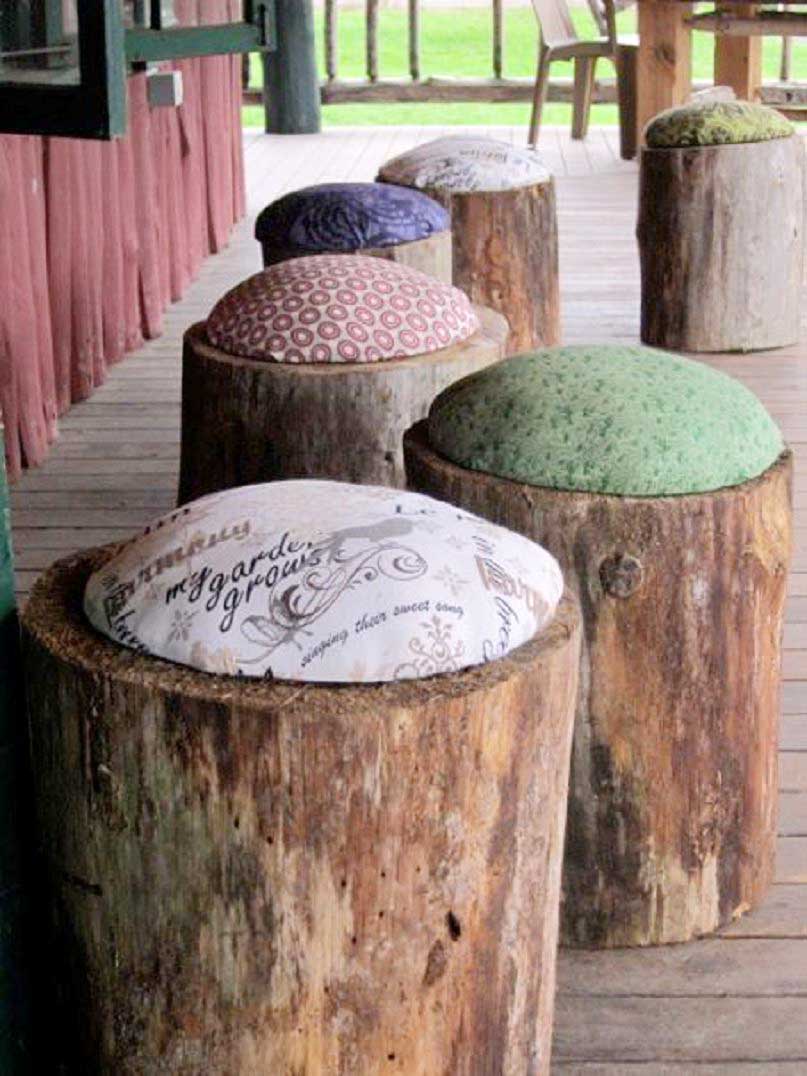 A tuskókat és a törzseket nemcsak mulcsra és hamura lehet átalakítani, hanem művészeti objektumokká, kerti bútorokká, grillezővé vagy az ágyások közötti járdává is.