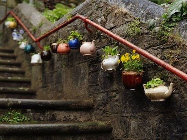 Használj bármilyen tartályt termesztéshez. Az ilyen teáskannák rengeteg nagymama komódjában megtalálhatóak azokból az időkből, amikor mindent előre megvettek. Ezeket ráadásul könnyű felakasztani.