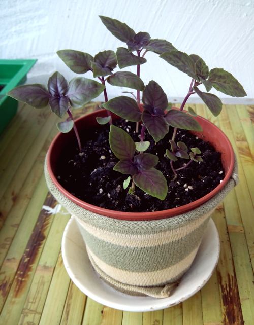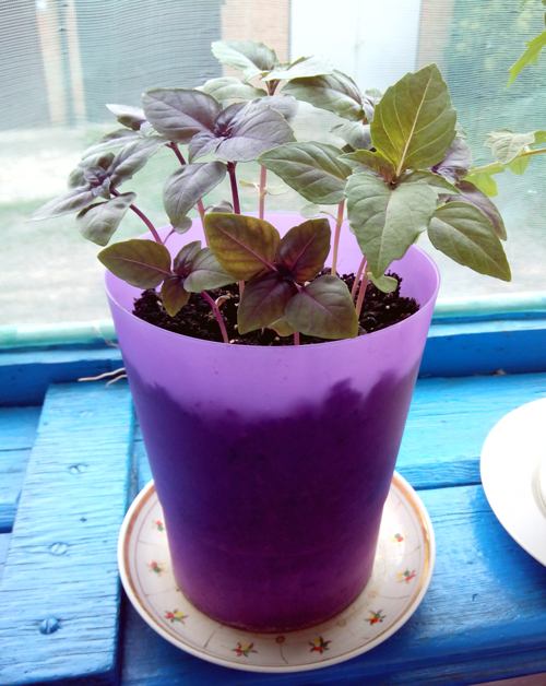 A bazsalikom különösen szép és illatos, amit nagyon könnyű cserépben nevelni. Két fajtát ültetek – ametisztet és opált. Amikor a nap átmelegíti a bazsalikom zöldjét, az ágacskák citromos-fahéjas illatot árasztanak. A virágzási időszakban néhány bokrot meghagyok virágzásra, a többin pedig lecsípem a virágzatokat.