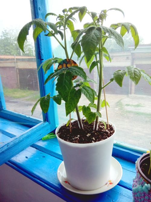 Ebben az idényben négy mini-paradicsom bokor boldog tulajdonosa lettem. Ezek már bőven növekednek és virágzásra készülnek. Imádom a paradicsom lombjának illatát öntözéskor – elég megérinteni az egyik ágat, és a frissítő, pezsdítő illat mosolyt csal az arcomra! Sikerült két-két bokrot egy-egy literes cserépbe ültetni, ami elégnek bizonyult. A paradicsom bokrai nagyon dekoratívak, bár kifejezetten napfénykedvelők. Mellesleg, a paradicsom évelő növény, amely évente többször is terem.