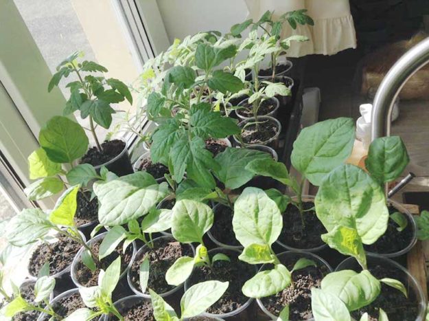 토마토 모종 씨앗은 3월 10일에 심어졌으며, 모두 너무 자랐습니다. 심기 2주 전에 리터 용기에 옮겨 심어야 했고, 이는 좋은 혼합토를 많이 소모하게 했습니다. 하루에 두 번 이 나무들을 이리저리 옮기는 일이었으며, 고양이들로부터 모종이 끊임없이 위협을 받았습니다. 결론: 3월 셋째 주 이전에 심지 않거나, 4월 초까지는 참는 것이 좋습니다.