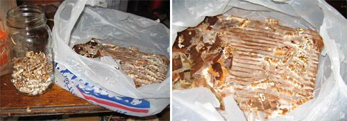 - Kertas karton boleh dijajah dengan sebarang sumber miselium - batang cendawan, ladang cendawan di atas serutan kayu, jerami, bijirin. Saya hampir pasti bahawa bahkan miselium “kering” yang mitos dari beg dapat terbangun dengan ajaib dan menjajah kertas karton.