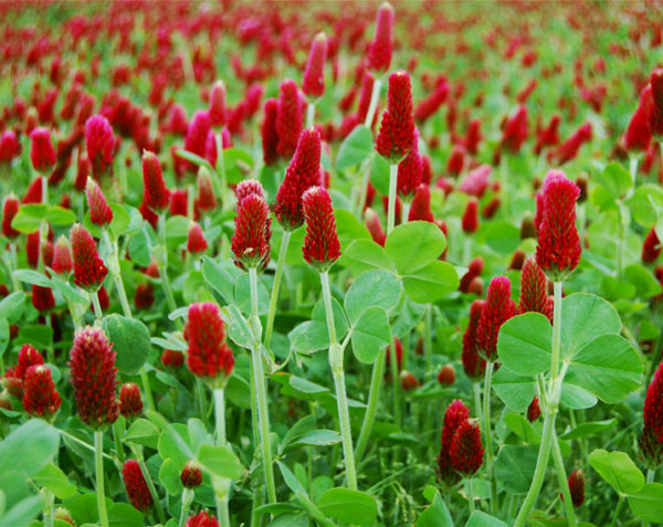 अरु नामहरू: बगर, इटालियन, रास्पबेरी, मासु रातो। प्रकार: बहुवर्षीय, वार्षिक। कार्यहरू: वायुमण्डलीय नाइट्रोजनको स्रोत, माटो बनाउने, क्षय रोकथाम, जीवित मल्चिङ (विशेष गरी बिचको रेखामा), चरीको फसल, हनी उत्पादन। मिश्रण: साग सब्जी, रायग्रेस, रातो क्लिभर।
