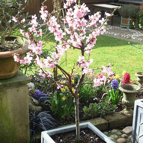 पहिलो समयका लागि ठुलो भाँडोको आवश्यकता छैन। तर बृक्षको रूपमा वृद्धि भएसँगै, यसलाई ७५ लिटरको कन्टेनेरको आवश्यकता पर्दछ - विश्वका बजार र ग्रीनहाउसहरूमा बदामका वृक्षहरू यस्ता कन्टेनरहरूमा उमार्दै फुल्छन्।