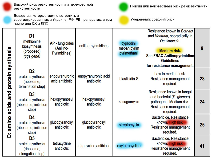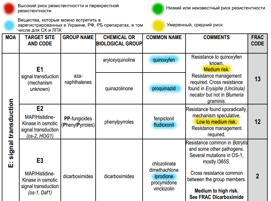 Het simpelste voorbeeld. In de verkoop is er een hele collectie strobilurinen, waaronder azoxystrobin Quadris (C3/11) en kresoxim-methyl Strobi (C3/11). De namen van de werkzame stoffen zijn anders, de gebruiksomschrijvingen komen vrijwel overeen - het lijkt erop dat ze in het schema van afwisseling kunnen worden opgenomen. Maar wetende dat dit, in wezen, zeer vergelijkbare stoffen met kruistolerantie zijn, zullen we een ander preparaat kiezen, en dat is de juiste keuze. Er is nog een verborgen valkuil bij strobilurinen - ze kunnen seizoensgebonden worden gebruikt. Dus, als we dit seizoen Quadris hebben toegepast, kunnen we volgend seizoen Strobi of Tanos (famoxadon C3/11) niet gebruiken.