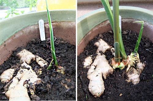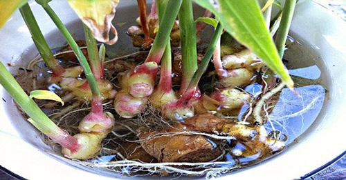 De grond voor gember moet voedzaam zijn, rijk aan fosfor, met een goede afwatering, omdat gember niet van natte omstandigheden houdt. Je hoeft de wortel niet diep in te graven - in dit geval moet je hem regelmatig besproeien. Binnen een maand of anderhalve maand zul je in een schaduwrijke plek zien dat gember begint te groeien. Houd de pot bedekt met plastic totdat de scheuten verschijnen. Zodra ze beginnen te groeien, besproei je ze regelmatig. Om nuttige stoffen in de wortel op te slaan, moet je gember voeden met minerale meststoffen.