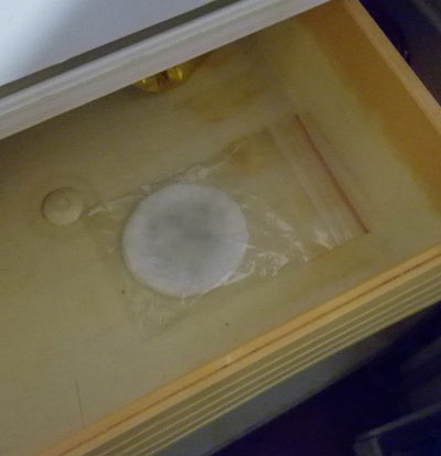 Ik plaatste het in het zakje en in de koelkast, op de koudste plek onder de vriezer. Daar heb ik gemiddeld 1-3 graden. Ik zal na 3 dagen beginnen te kijken en lucht in het zakje laten.