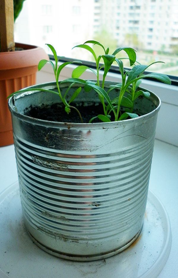 Zoals je kunt zien, is er geen citroenmelisse onder de opgroeiende jongeren. De plantjes waren zwakjes, en ik heb ze van hun lijden verlost. Aan de beurt is het zaaien van tijm en een nieuwe soort cresson-sla.