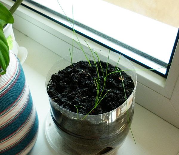 Een nieuwe fotoverslag van de vensterbankmoestuin: dille, estragon, snij-ui, dille.