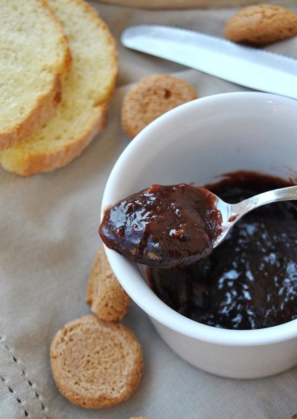 Removemos o caroço da ameixa e deixamos de molho no açúcar durante a noite. Colocamos a ameixa que “repousou” no fogo, cozinhando por 20-30 minutos com um pau de canela. Adicionamos cacau natural de boa qualidade e cozinhamos por mais 15 minutos, depois adicionamos as nozes e continuamos a cozinhar por mais 20 minutos. Envasamos em potes esterilizados e fechamos. Esta quantidade de ingredientes é suficiente para 3 potes de 0,5 litro. Perfeito para experimentar.