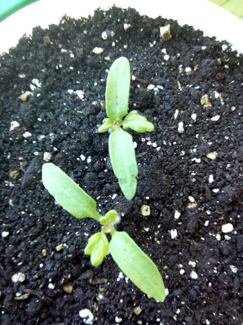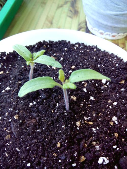- 14 dias. Apareceram as primeiras folhas verdadeiras. É possível fazer a primeira fertilização com adubo mineral. Mas se você está usando cinzas, pode esperar até a replantação em vasos. Irrigamos o solo e borrifamos nas mudas - de manhã cedo ou à noite. Se o tempo estiver nublado e úmido, não devemos borrifar as folhas (para não provocar fungos).
