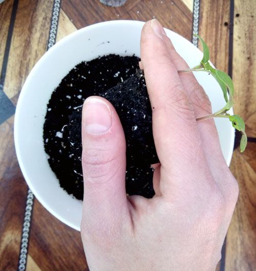 - Adicionei mais solo ao vaso, ao redor dos tomates.