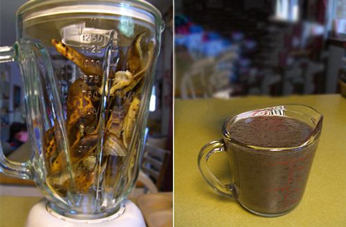 - Pune coaja de la 1 banană în blender și adaugă un pahar cu apă.