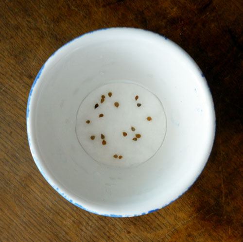 4. นำสำลีก้อนอีกหนึ่งชิ้นมาชุบ และคลุมเมล็ดไว้ สภาพแวดล้อมที่มีความชื้นจะช่วยให้เมล็ดตื่นตัวและเริ่มพองตัวได้ ใช้เวลา 24 ชั่วโมงก็เพียงพอ แต่ของฉันปล่อยไว้ 2 วัน โดยไม่เติมน้ำเพิ่ม และไม่ได้แช่ในสารโพแทสเซียมเปอร์แมงกาเนต เพราะในร้านขายยาหาไม่ได้