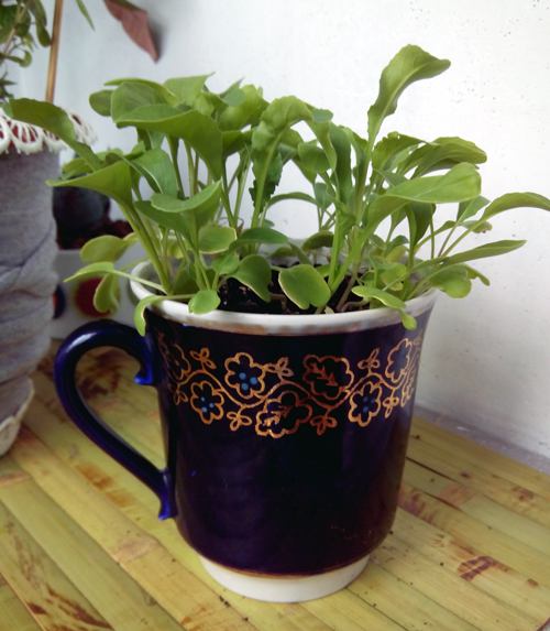 Руккола растет и в чашке. Смотрится очень мило)))